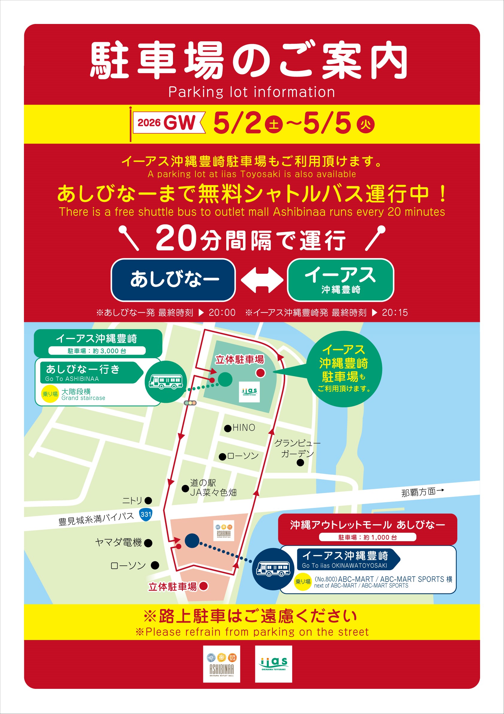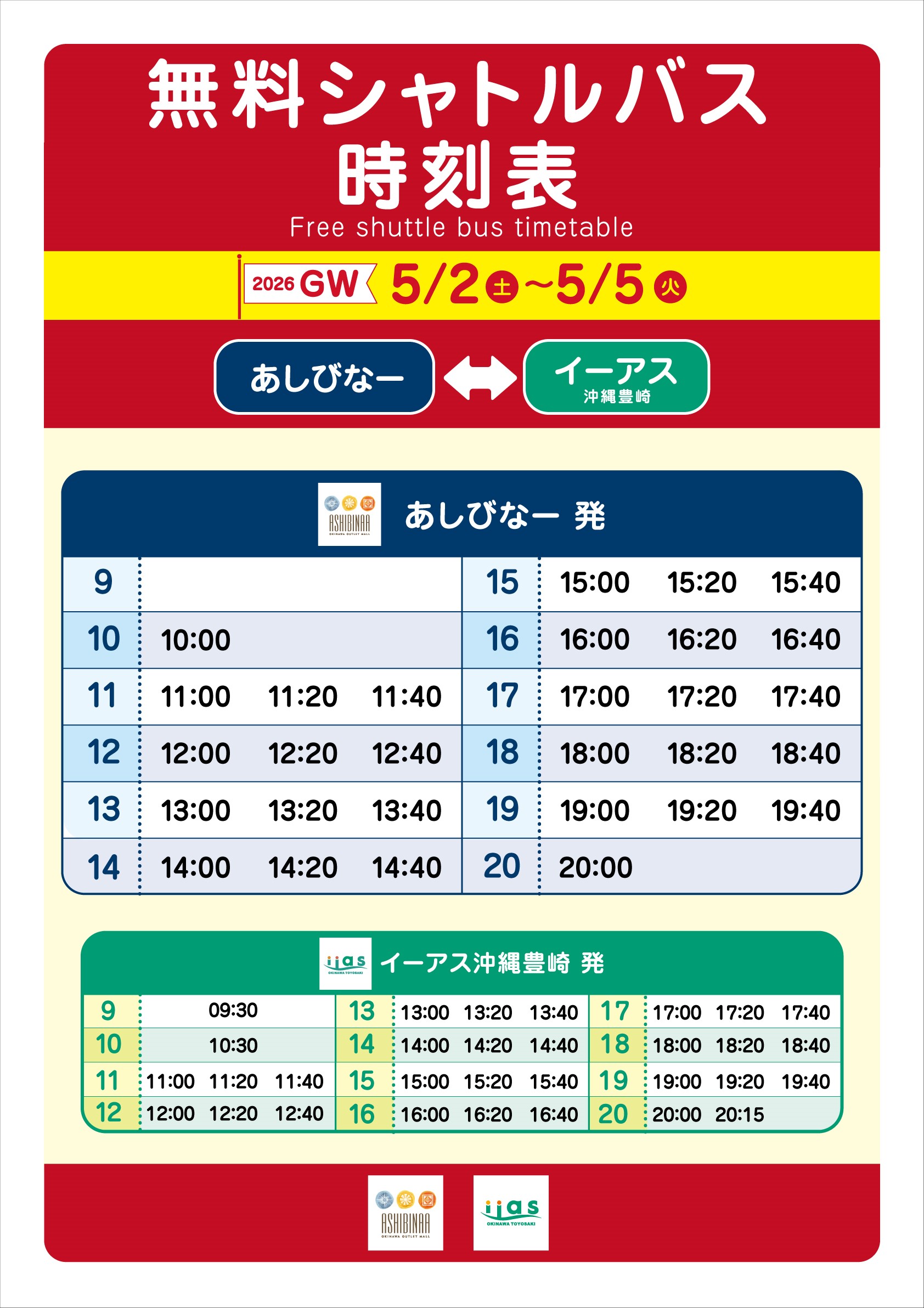 2026.5.2(土)~5.5(火)無料シャトルバス増便【あしびなー⇔イーアス】