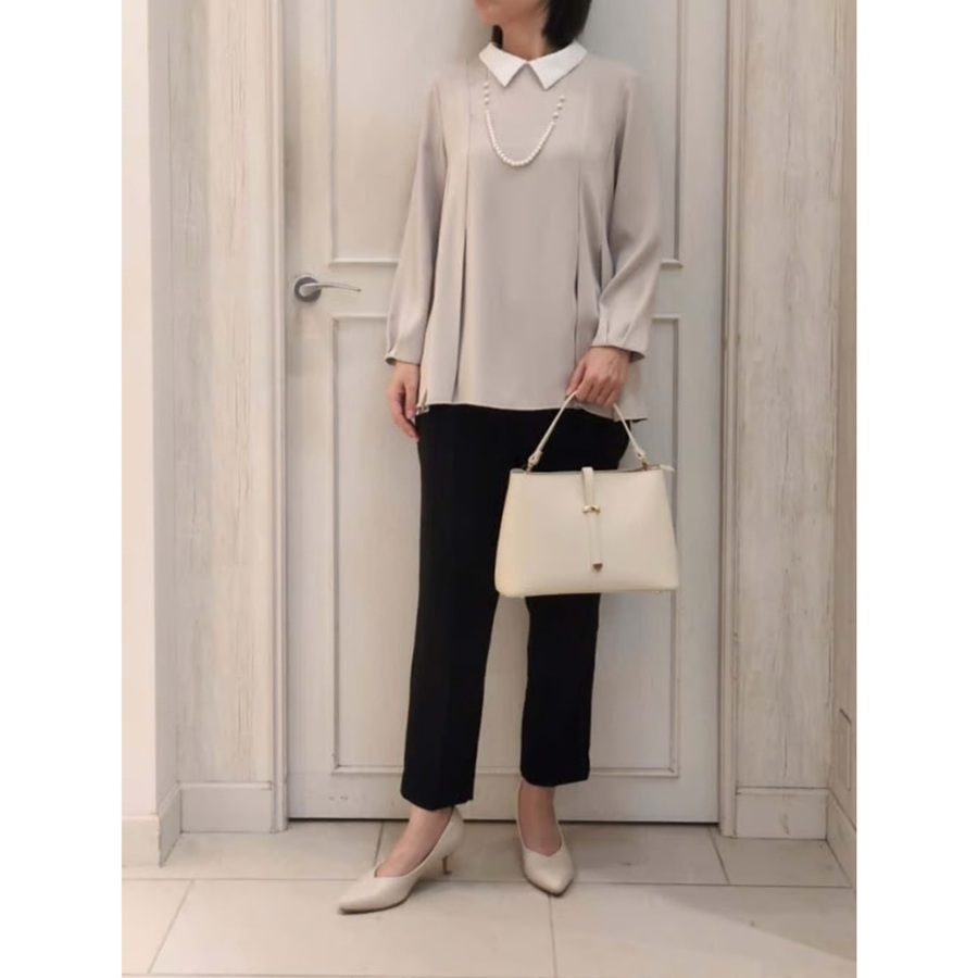 ①2WAYサテン襟付きペプラムブラウス